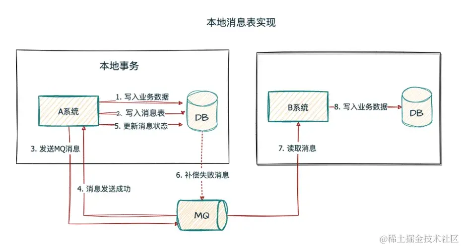 本地消息表:通过本地消息表记录事务状态,确保消息的可靠传递
