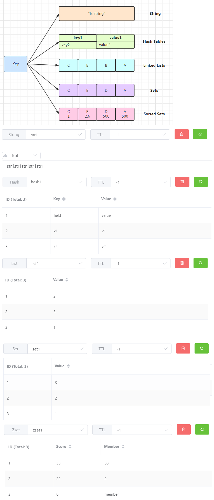 还支持哈希(Hash)、集合(Set)、有序集合(Sorted Set)和列表(List)等